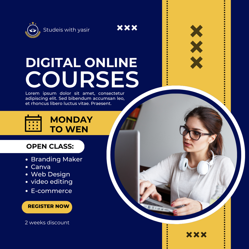 Digital courses - Canva - filmora video editor - e commerce on shopify and website
